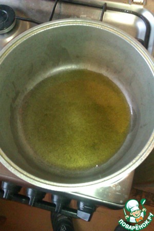 В жаровню налить оливкового масла чтоб скрыло дно. Поставить на сильный огонь.
