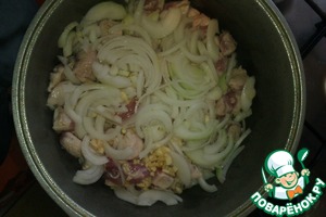 - Индейка (Можно любое другое мясо. Порезать небольшими кусочками.) — 1 кг