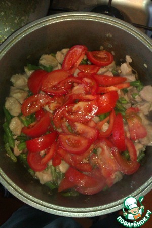 Добавляем помидоры, перемешиваем и тушим 10 минут.