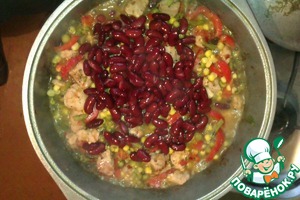 Добавляем красную фасоль. Перемешиваем. Тушим 3 минуты.