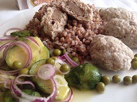 • Сервируем тарелки - кладем гречку, котлетки и салатик из капусты.