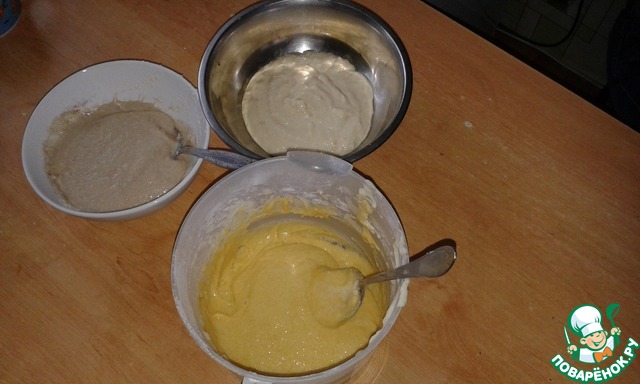 Делим тесто на 3 части. В первую добавляем куркуму, во вторую - корицу, последнюю оставим белой