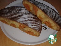 В смазанную маслом форму выкладываем тесто ложкой по очереди "пятнышками". Выпекаем при 180 градусах до готовности (около 40 минут). Наш пирог в вертикальном разрезе