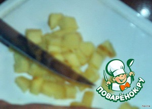 После нарезаем его кубиками.