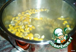 Выкладываем в кастрюлю с кипятком, выжимаем сок лимона и нарезаем кубиками кожуру лимона, тоже кладем в кастрюлю. Засыпаем сахарный песок по вкусу. Всё, НЕ ВАРИТЬ. Даем чуть настояться.