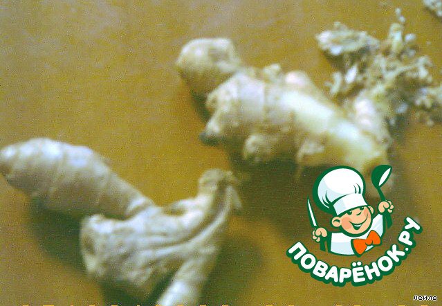 Корень имбиря очищаем от верхней кожицы (чистим как свежую картошку, верхнюю пленку).