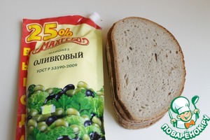 Итак, нам понадобится хлеб уже порезанный, лучше не белый, и майонез.