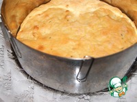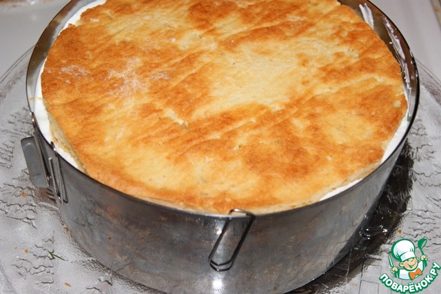 В кулинарное кольцо поместить 1 основной корж (я предварительно слегка обрезала его по кругу)