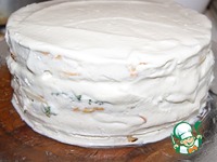 Сверху поместить шпинатный корж и смазать чуть большей половиной оставшегося крема. Накрыть 2-м основным коржом. Поставить торт на 1 час в холодильник.
