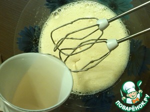 Взбиваем сахар и яйца до крепкой белой пены и увеличения объема. Затем добавляем растительное масло, сок половины лимона, лимонную цедру половины лимона.