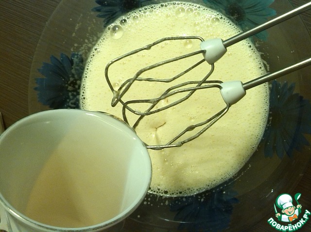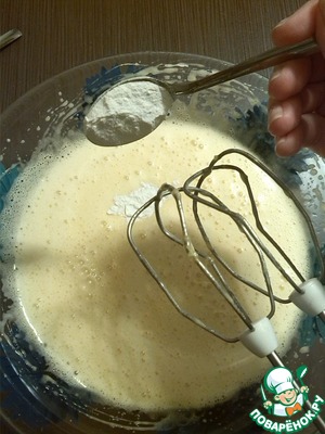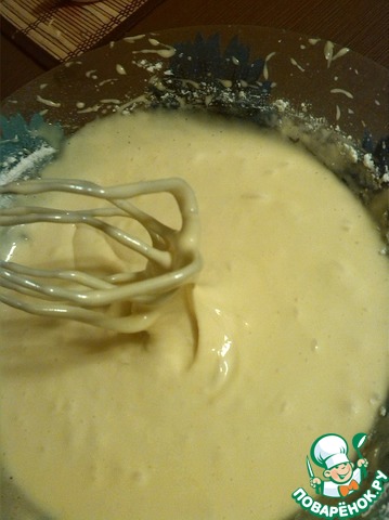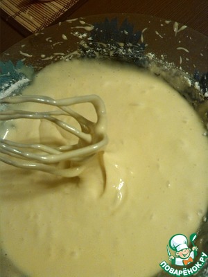 И начинаем помешивая подсыпать муку, постепенно. Возможно муки потребуется меньше. Тесто должно получится консистенции сметаны.