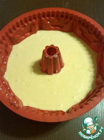 Выливаем тесто в форму. Предварительно смазав маслом. У меня форма силиконовая.