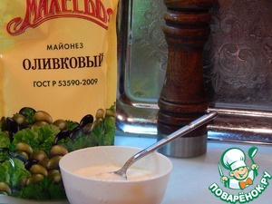 Тем временем готовим соус из сыра, майонеза и бульона (1/2 стак.).