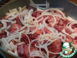 Добавляем нарезанный полукольцами лук, перемешиваем. -
