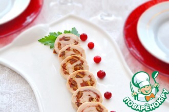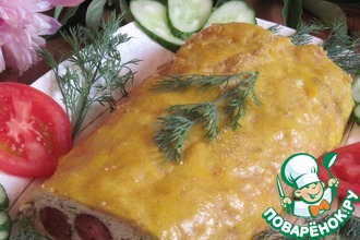 Потрясающий рулет с нежным вкусом, благодаря начинке из куриного и свиного фарша с сыром, морковью и майонезом.