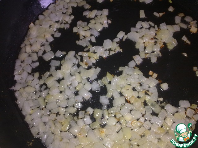 Лук мелко нарезать и обжарить до золотистого цвета.