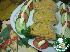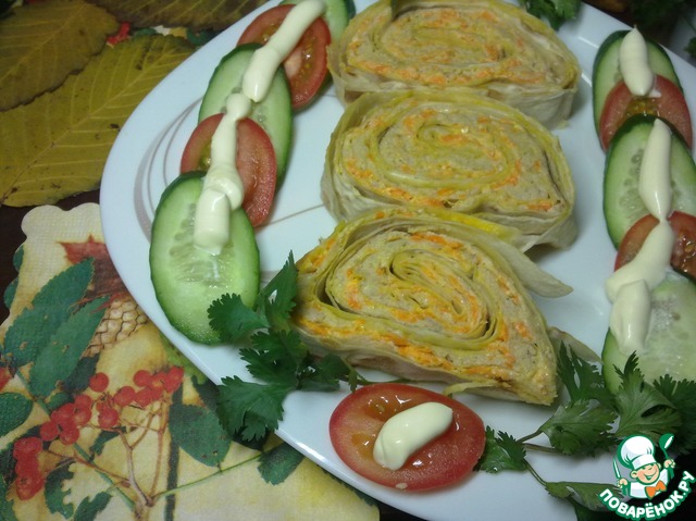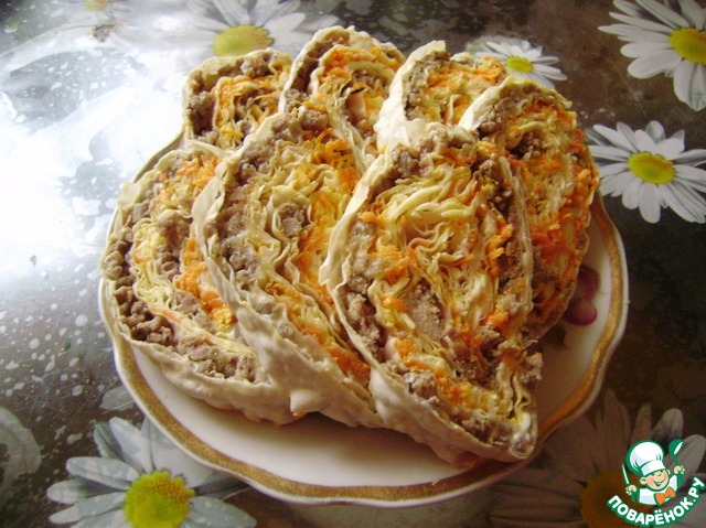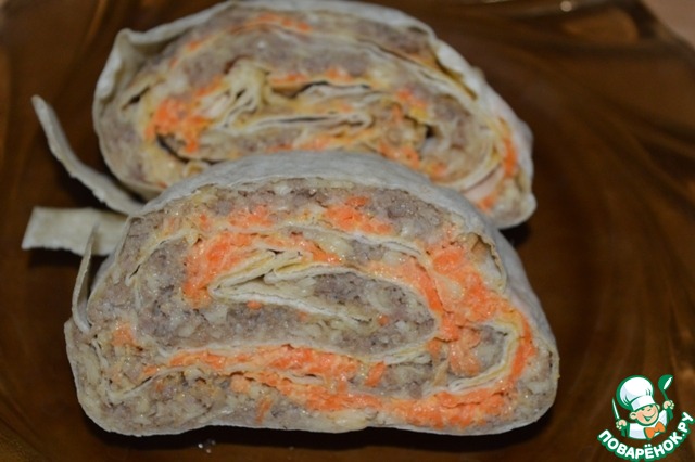 Рецепт «Рулет из лаваша с фаршем и морковью»: