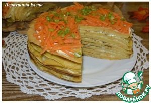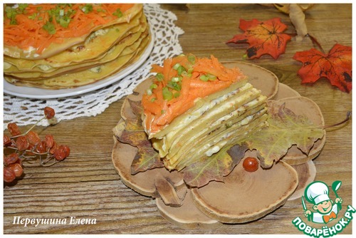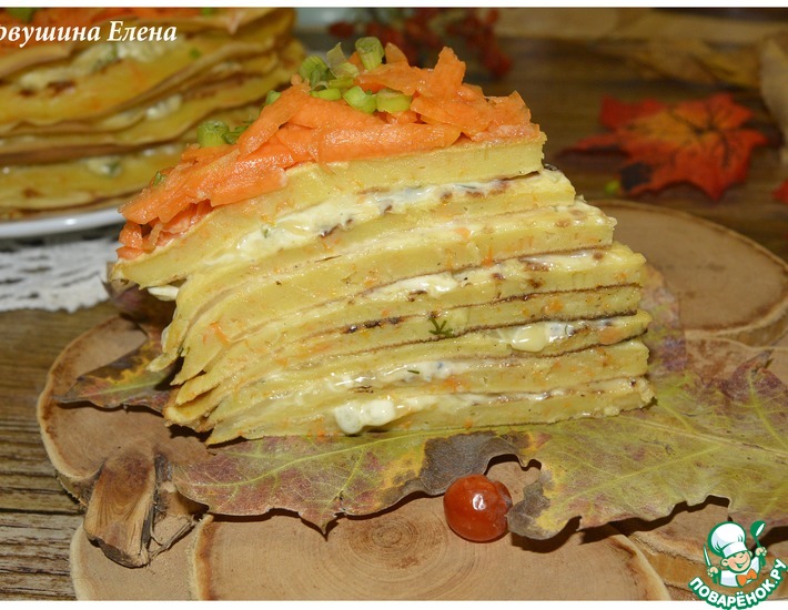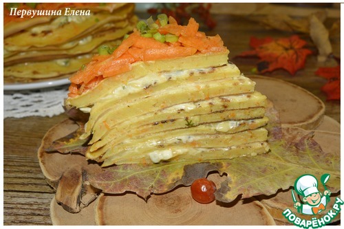 Рецепт «Блинный тыквенный торт с прослойкой из сыра»: