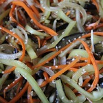 Вкусная идея.....я думаю, что можно этот салатик сделать и по аналогии со всеми корейскими заправками( например, разогреть масло и быстро прогреть в нём все специи, включая чеснок).