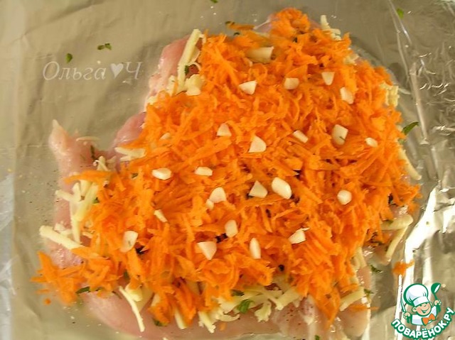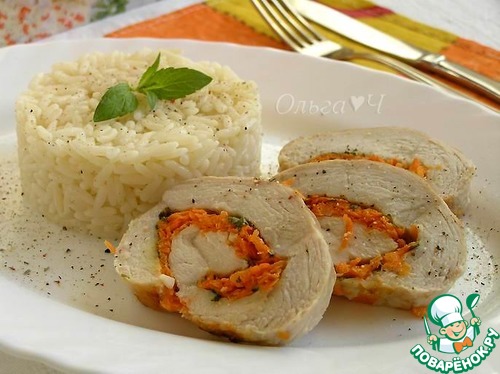 Рецепт «Куриный рулет с мятным сыром и морковью»: