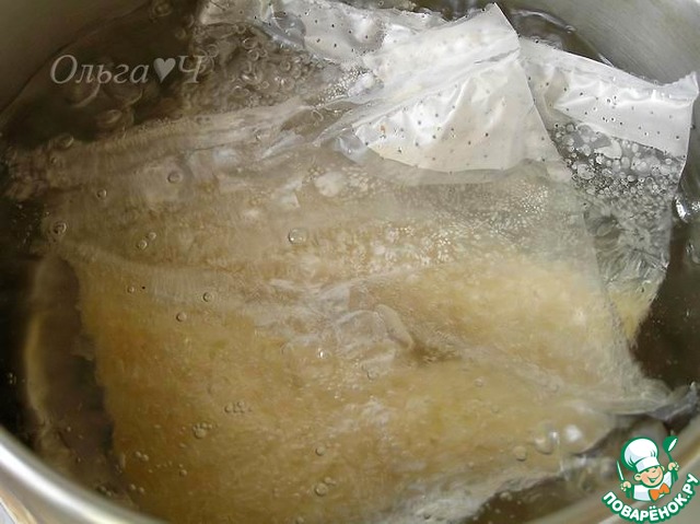 Вскипятить воду для риса, опустить пакетики и варить до готовности.