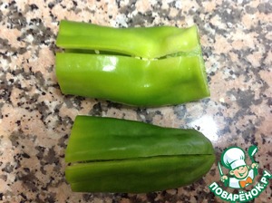 Зеленый перец разрезать по-полам и отварить 15 минут.