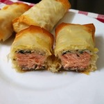 Блиц-рецепт 1. Поварятушки, дорогие, была в выходные на свадьбе в Мадриде. Угощали нас в ресторане "", который специализируется на рыбе и морепродуктах. На первое подавали хрустящие конверты с лососем, которые произвели на меня большое впечатление. В Испании принято, что после званного обеда шеф-повар выходит к гостям и все делятся мнением о съеденном за бокальчиком вина. Подуставший шеф, разомлев от красненького, выдал мне все свои секреты! Делюсь с Вами потрясающим по простоте приготовления и яркости вкуса рецептом.