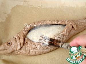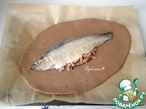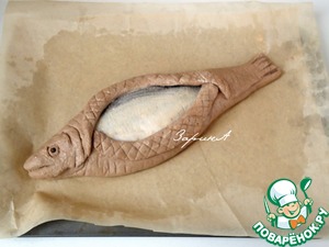 Завернуть рыбу в тесто, образуя подобие "сюртука".