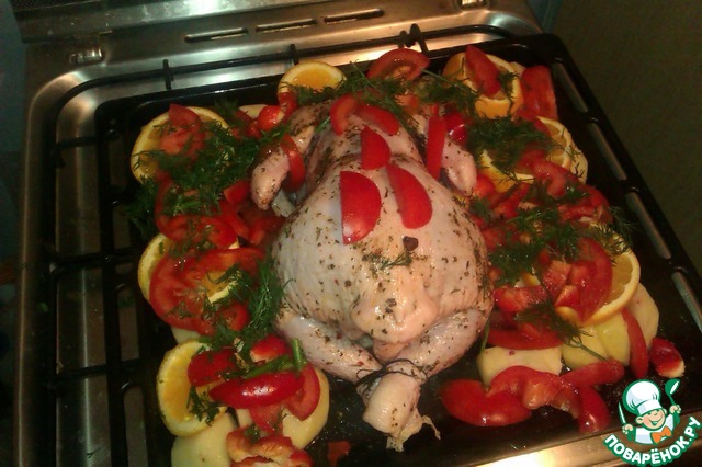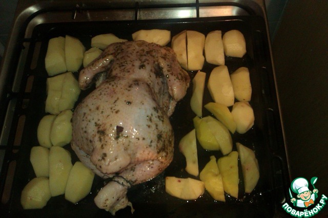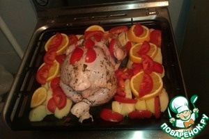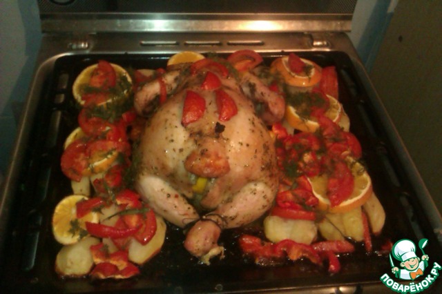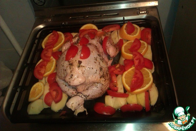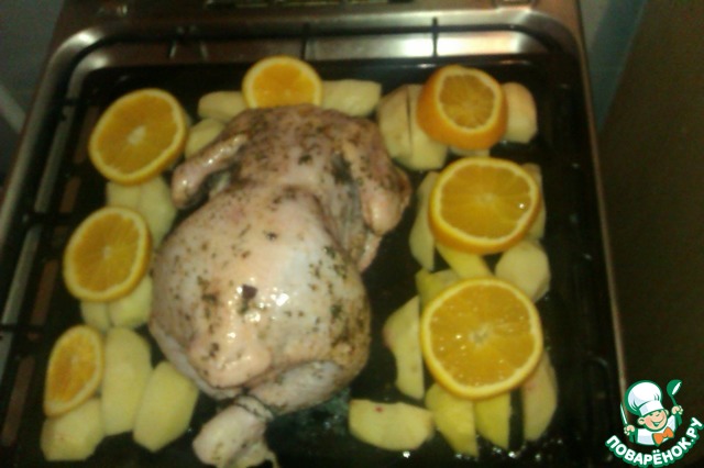 Ave поварята. Представляю вашему вниманию очень сочную и нежную курочку с апельсинами и печёным картофелем в качестве гарнира.