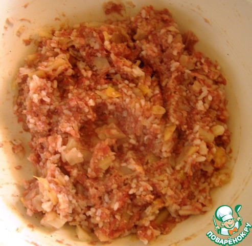 Хорошо вымешиваем фарш, чтобы масса была достаточно пластичной (не рассыпчатой)