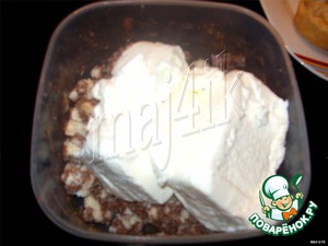 Все перемешать, добавить немного варенья, корицy и ванильный сахар.