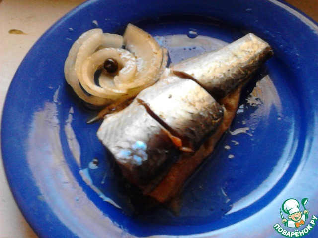 7. Заливаем селедочку маринадом (масло, вода, уксус).