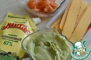 1. Авокадо почистить, удалить косточку, положить в чашу блендера, добавить лимонный сок, черный перец, измельчить в пюре. Затем добавить майонез, перемешать.
