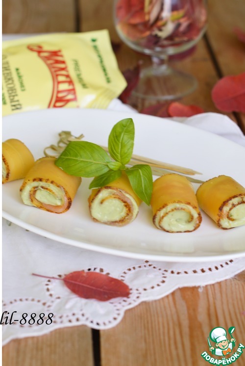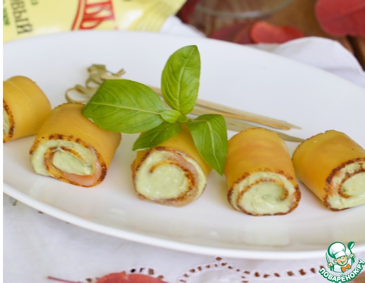 4. Свернуть сыр рулетом. С начинкой можно экспериментировать.