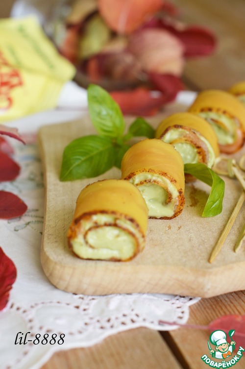 Рулетики из сыра с лососем и кремом из авокадо и майонеза Оливковый от Махеев. Просто и нарядно, на каждый день и на праздничный стол.
