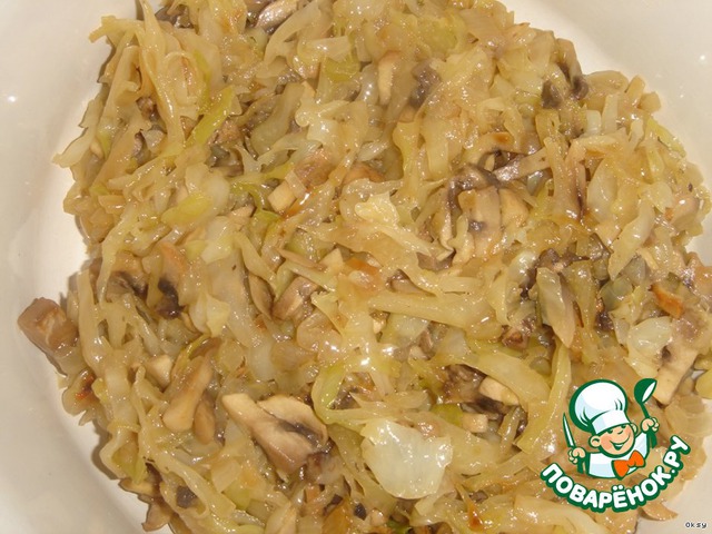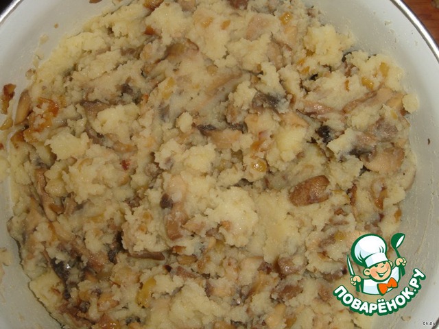 Начинка из картофельного пюре с жаренным лучком и грибочками.