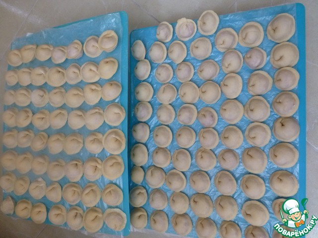 Итого, как я уже написала, 194 вареника и 74 пельменя:) Осталось только сварить.