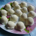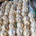 Может быть, кому-то пригодится. Очень хороший рецепт приготовления теста для вареников и пельменей, тесто получается мягкое, эластичное, хорошо раскатывается, хранится в холодильнике несколько дней. Я по этому рецепту делаю тесто не часто, так как для нашей семьи получается многовато. Пробовала делать пол порции - не то. А полная порция - это 194 вареника и 74 пельмешки :)Специально посчитала:)