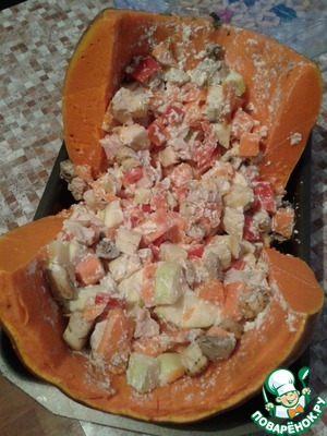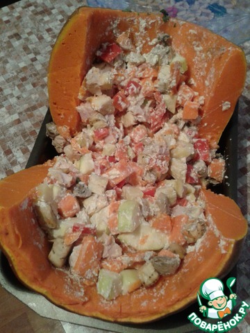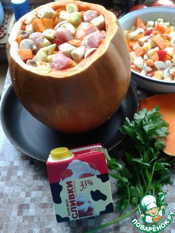 Прикатилась ко мне тыква, не маленькая такая. Крестная я только у принцев и поэтому карету делать не стала. Решила сделать "горшочек" и приготовить офощное рагу с мясом.