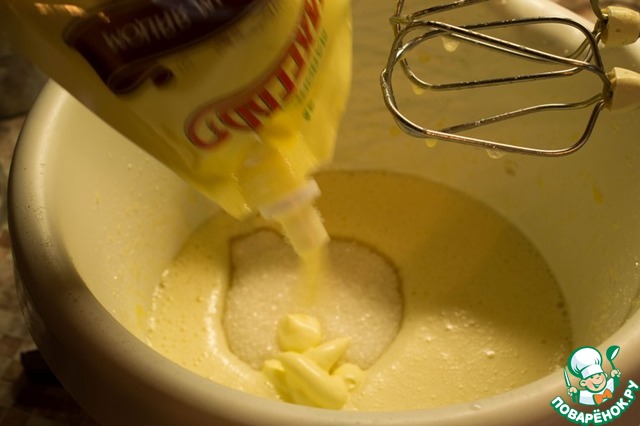 Муку смешать с разрыхлителем, ванилином, специями и, просеивая, ввести в смесь. Хорошо размешать миксером.