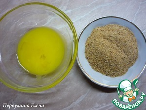 Растереть яичные желтки в отдельной миске. В другую насыпать панировочные сухари.