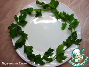 Приготовить тарелку для подачи, украсив бортики петрушкой (это по желанию).