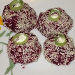 У меня было мало грибов, поэтому шарики свекольные только одного цвета. Готовила на новогодний стол. Спасибо за рецепт