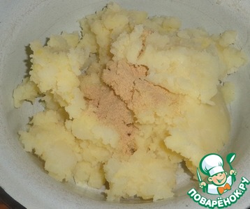 Картофель очистить и отварить в подсоленной воде до готовности. Затем картофель размять и добавить имбирь. Перемешиваем. Солим и перчим по вкусу.