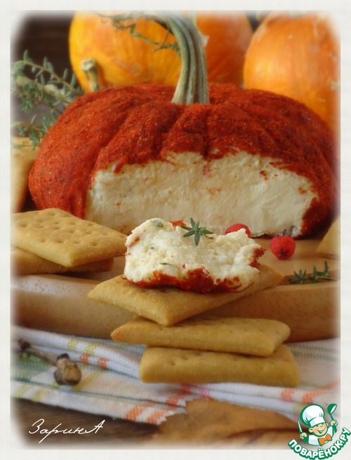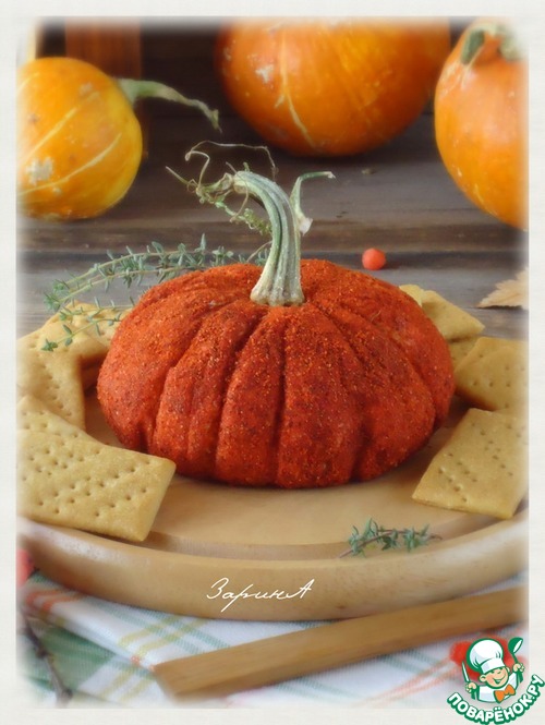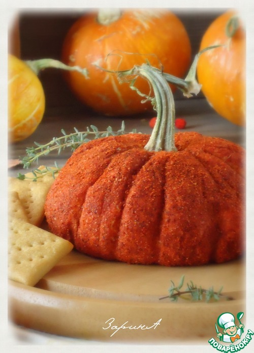 Года три назад на просторах интернета я наткнулась на закуску в форме тыквы. Состав был другой, в основном состоял из различных сыров...