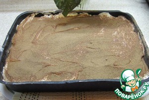 На крем выкладываем коржи, смоченные в кофе и слегка отжатые.