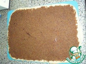 Готовое тесто раскатываем в прямоугольник примерно 23*30 см. Смазываем сверху растопленным маслом (2 ст. л.).