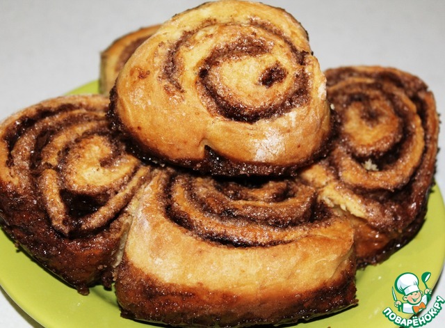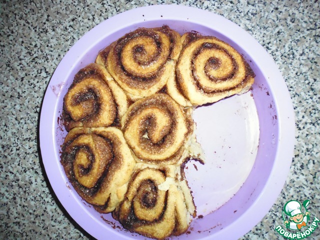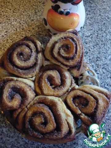Такие пышные булочки хороши как для завтрака, так и для дневного чаепития, их можно готовить с дрожжами и без них. В этом варианте тесто не дрожжевое, благодаря чему испечь булочки можно быстрее, а значит ожидание, при волнующем аромате корицы, будет менее томительным! Сам рецепт взят из журнала "Изысканная выпечка".