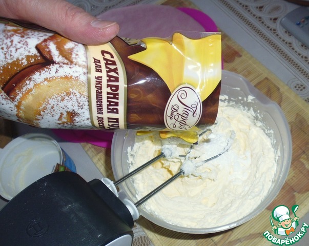 Подмешиваем лимонную цедру и ванилин. Продолжаем взбивать, что б получился однородный крем.