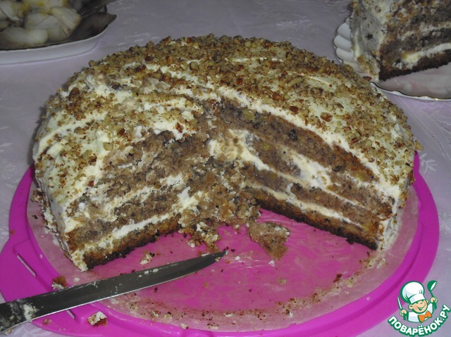 В этом торте пряные ореховые коржи с ананасом и бананами отлично сочетаются с кремом из сливочного сыра. Торт шикарный, недавно делала его на 70-тилетие своей мамы. Всем очень понравился, даже среднему сыну, который не любит грецкие орехи, а пекан его напоминает, с огромным удовольствием уплетал за обе щеки.